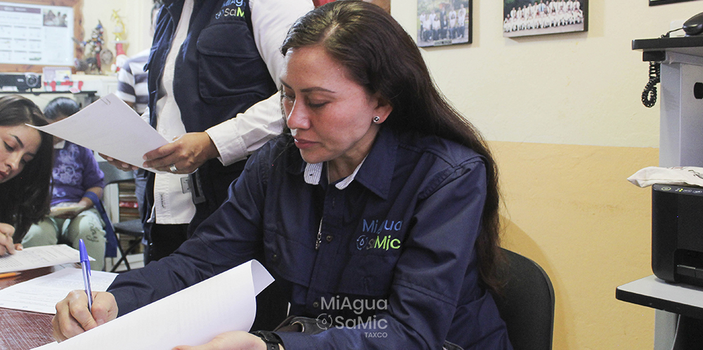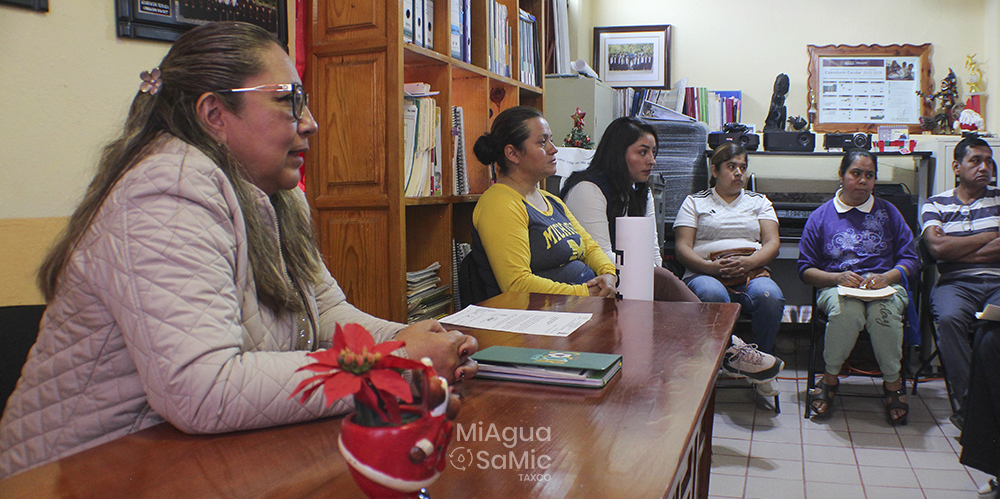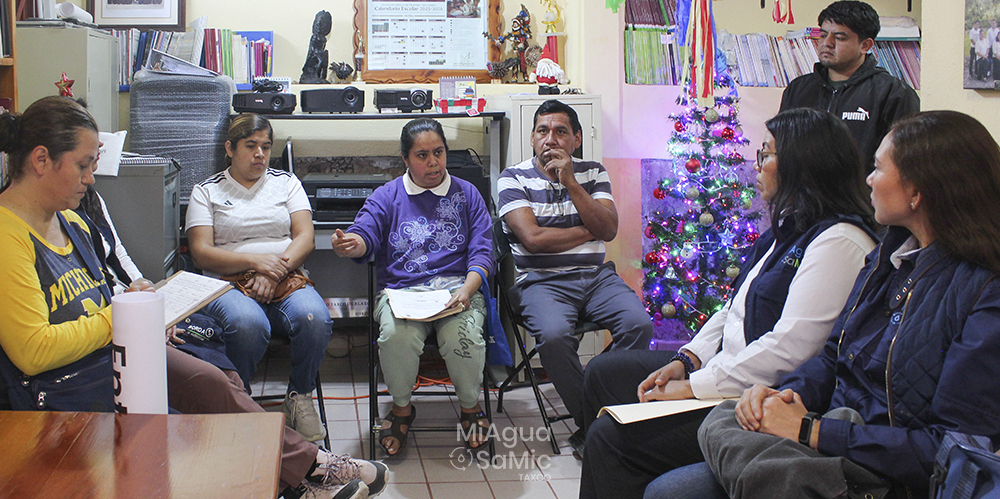 padres de familia, la directora de la escuela primaria Cuauhtémoc, el comisario municipal de Huajojutla, la coordinadora municipal del proyecto MiAgua SaMic
